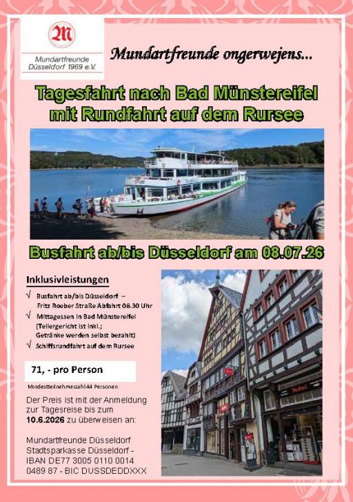 Abfahrt des Busses um 8:30 Uhr nach Bad Münstereifel.